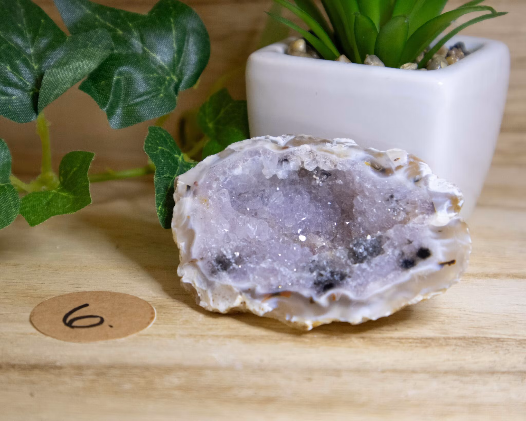 Geoder är ihåliga stenklot som när man öppnar dem har en kärna av  kristaller. Så vackert! Vanligast är ametist, celestin, citrin eller  någon form av kvarts. Innehåller de agat kallas dom för åskägg. Använd  geoden i hemmet eller på jobbet och den absorberar ilska och irritation  och ersätter med vänlighet och omtänksamma handlingar.  Den skänker  vackra visioner när man håller upp den mot levande ljus. Placera en geod  i trädgården och gå ut mitt i natten för att se och träffa  nattvarelser, även de mest skygga.