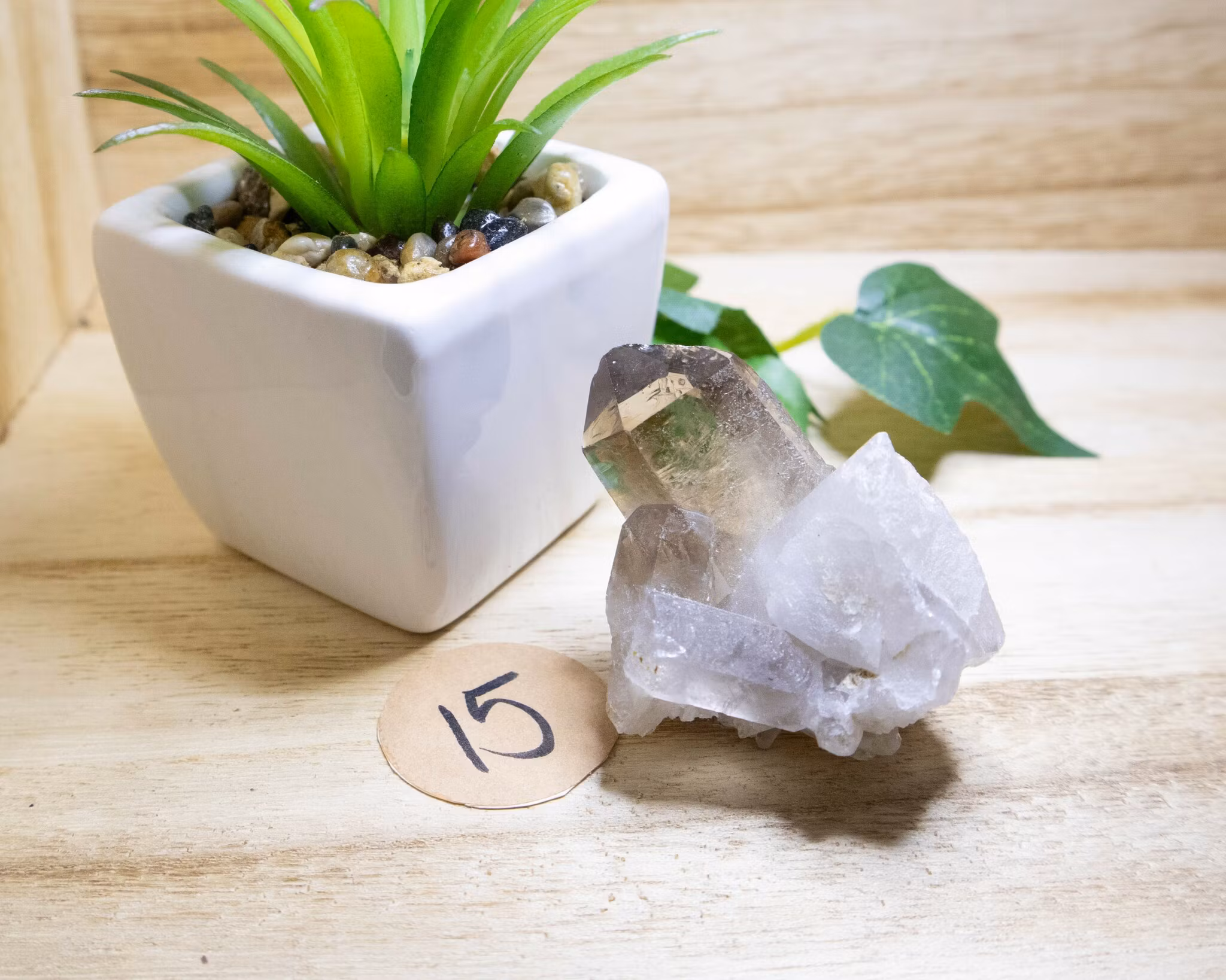 Härliga vackra rökkvartskluster i olika storlekar. Färgen varierar från ljus till mörk. Det finns med stora spetsar och små spetsar. Rökkvartsen får sin fä