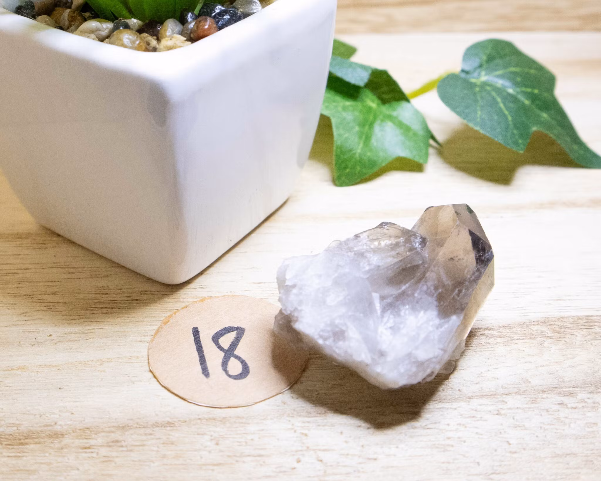 Härliga vackra rökkvartskluster i olika storlekar. Färgen varierar från ljus till mörk. Det finns med stora spetsar och små spetsar. Rökkvartsen får sin fä
