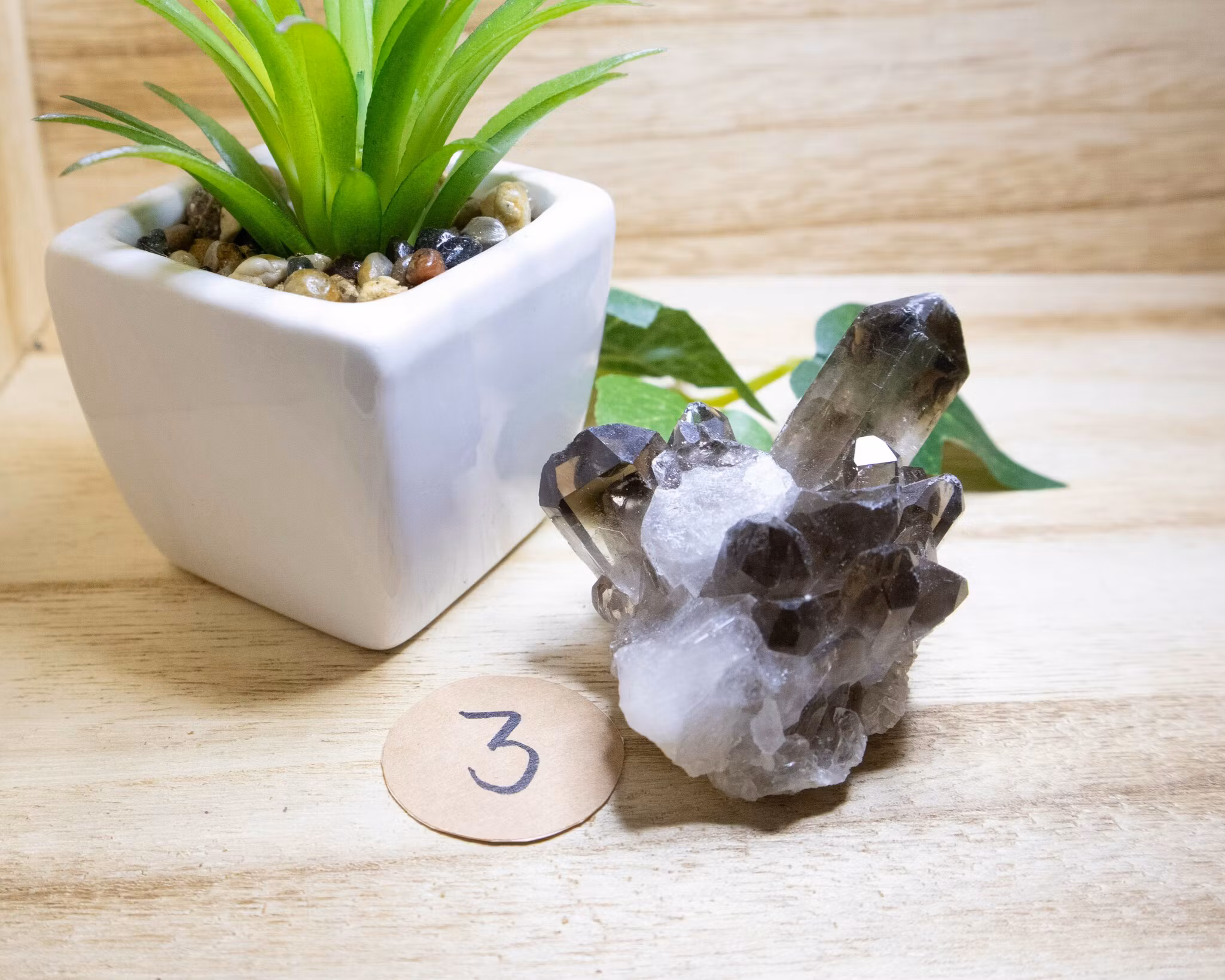 Härliga vackra rökkvartskluster i olika storlekar. Färgen varierar från ljus till mörk. Det finns med stora spetsar och små spetsar. Rökkvartsen får sin fä