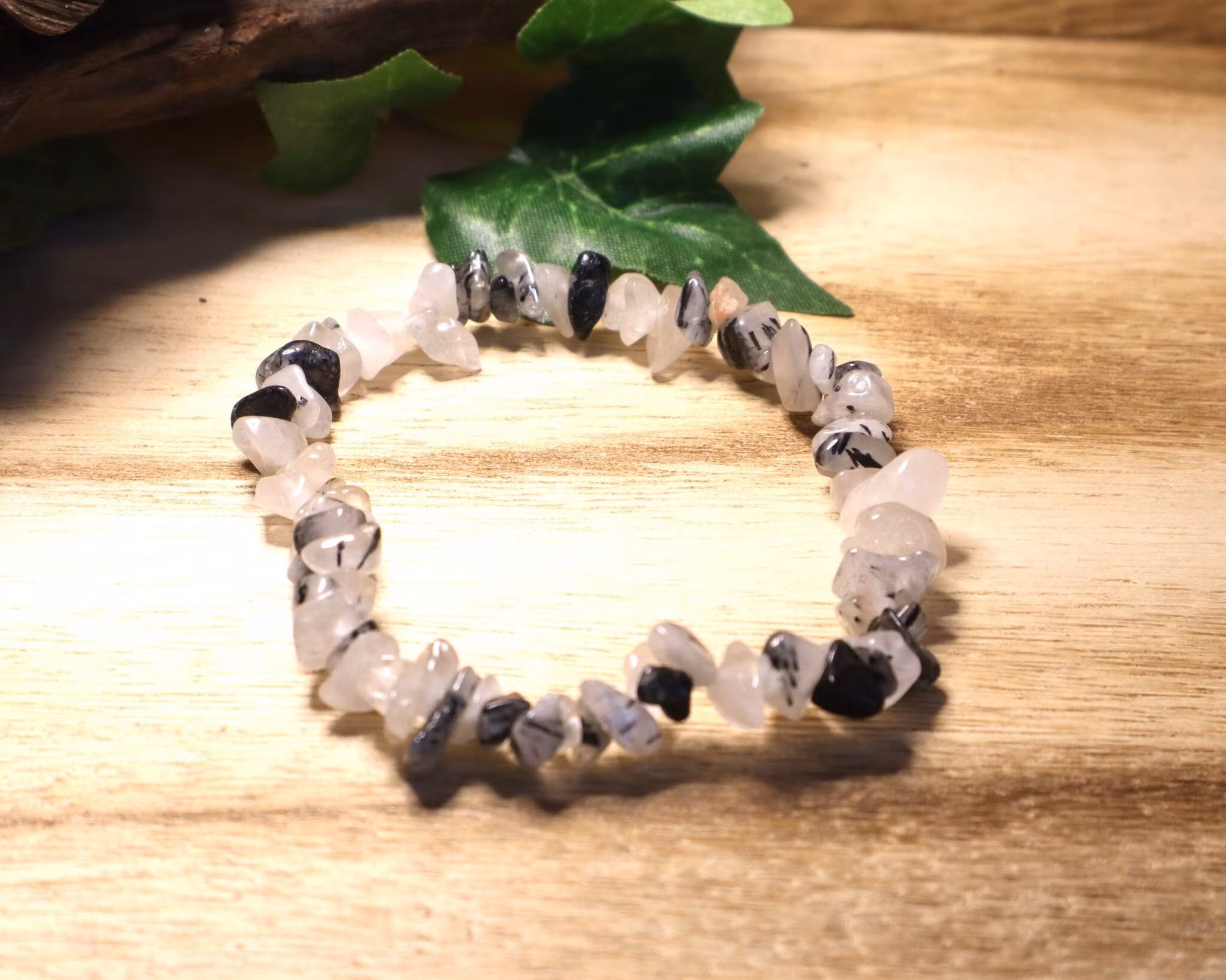 Rutilkvarts med svart turmalin. Lägg det gamla bakom dig, öppnar upp nya vägar och tar bort negativa vibrationer. Den får dig att känna dig stark och ger dig möjligheten att se från nya synvinklar för att lösa problem konstruktivt.